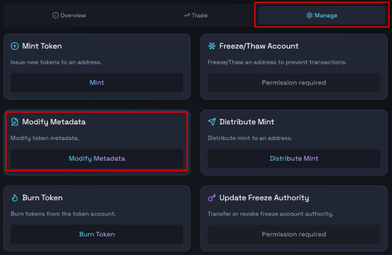 * And then, you will see the **Modify Metadata** button to update the token details.