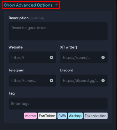💡 **Tip:** Click **"Show Advanced Options"** to reveal additional metadata fields.\