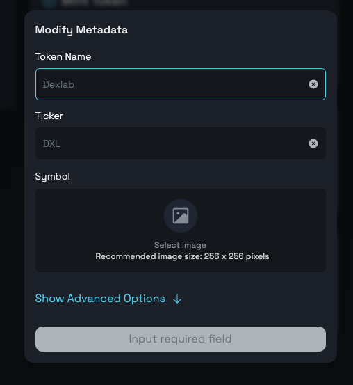 * Click the **Modify Metadata** button from the previous step to update the token details.