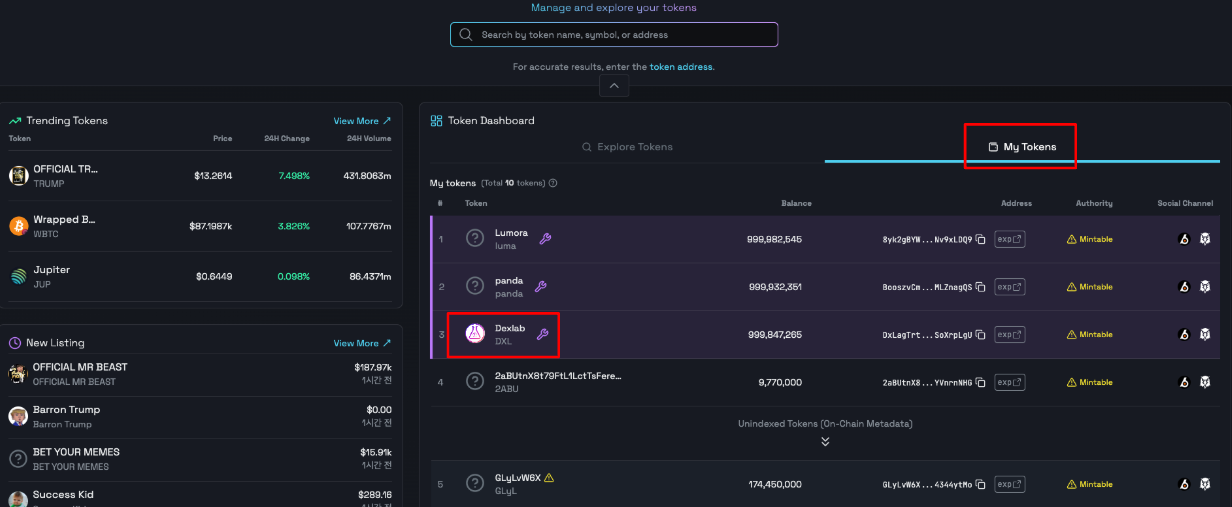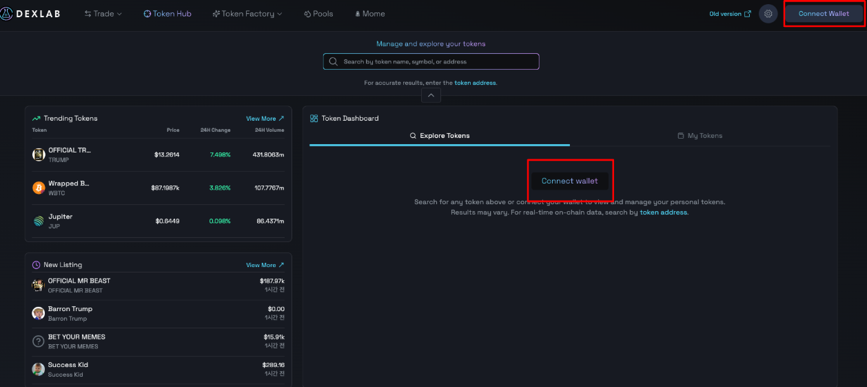 * Open Token Hub ([https://dexlab.space/token-hub](https://www.dexlab.space/token-hub))
